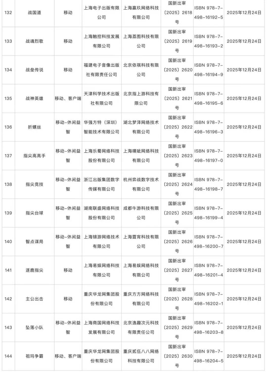 12月25日,国家新闻出版署发放了2025年12月游戏版号,共有3款进口游戏、144款国产游戏获批版号,腾讯的《QQ经典农场》手游、《波斯王子:失落的王冠》《白银之城》等游戏过审。