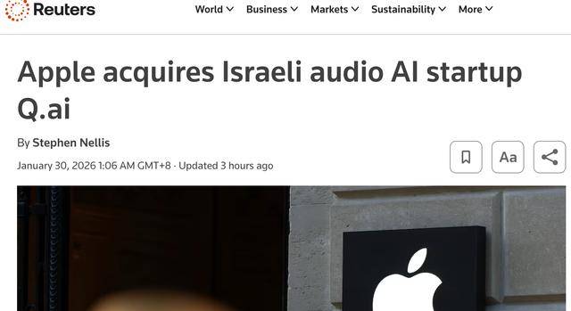 1月30日消息,据路透社披露,科技巨头苹果公司已完成对以色列初创公司Q.ai的收购,或可帮助升级音频技术。